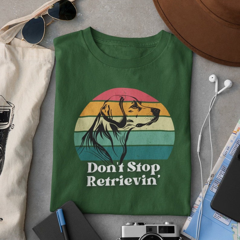 Retro Dog Lover Tee: Don't Stop Retrievin' - Unisex Shirt for Dog Mom, Dog Dad, Golden Retriever + Labrador + Toller Owners, Puppy Gift