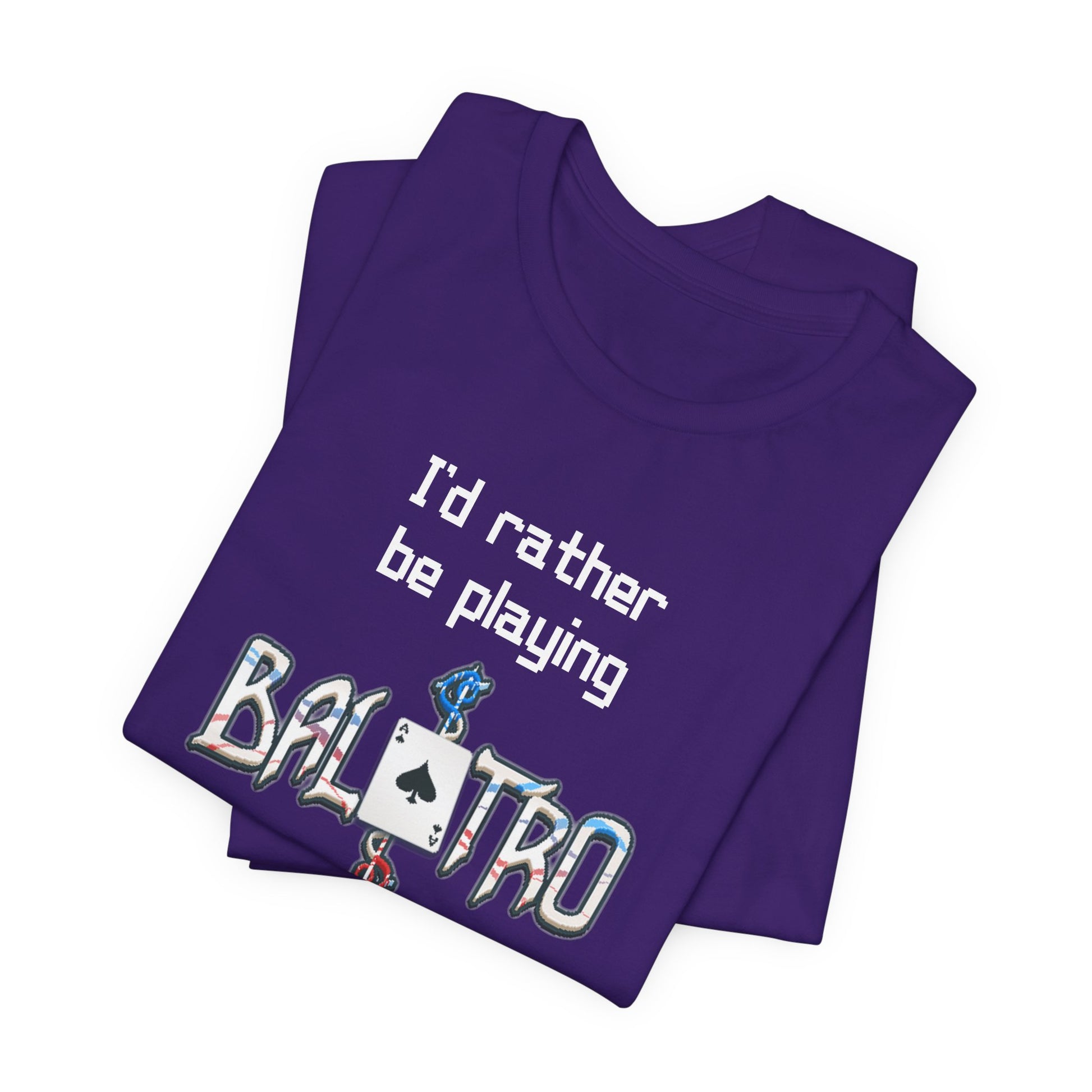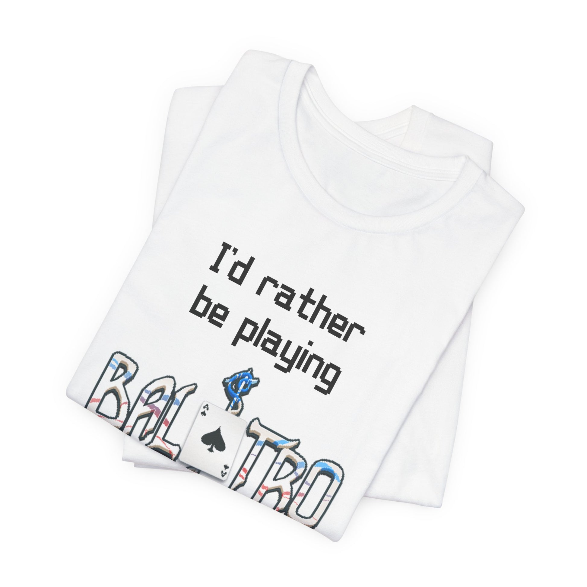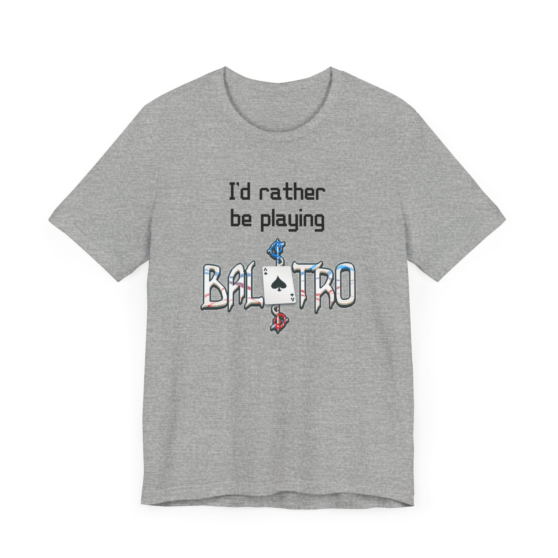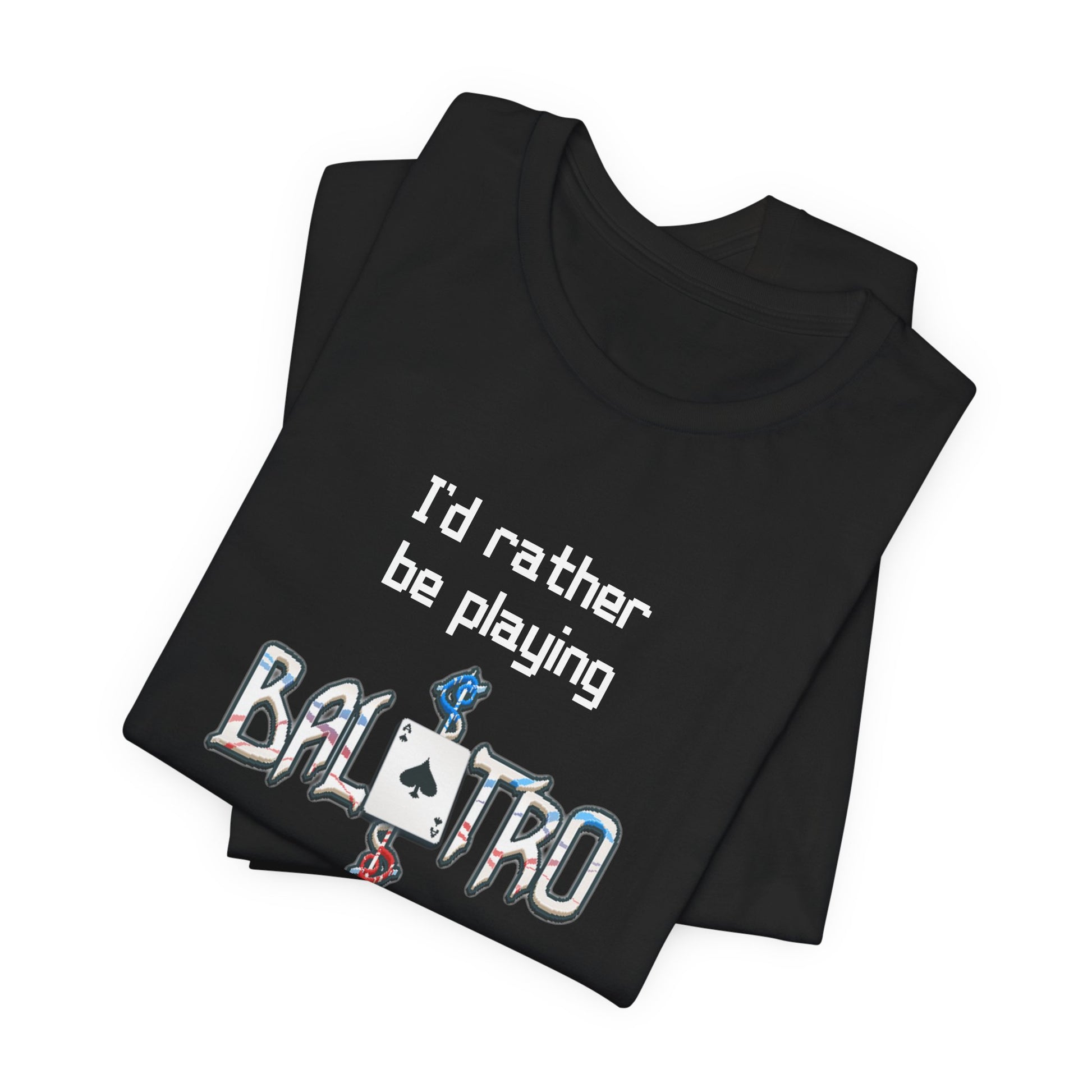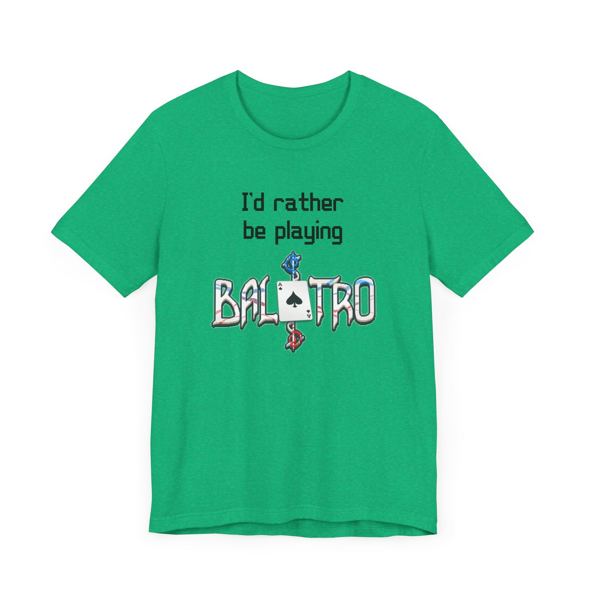 Balatro Gaming Tee: 'I'd Rather Be Playing BALATRO' - Unisex Shirt for Video Gamers who like Roguelites, Deckbuilders, Roguelikes, Poker