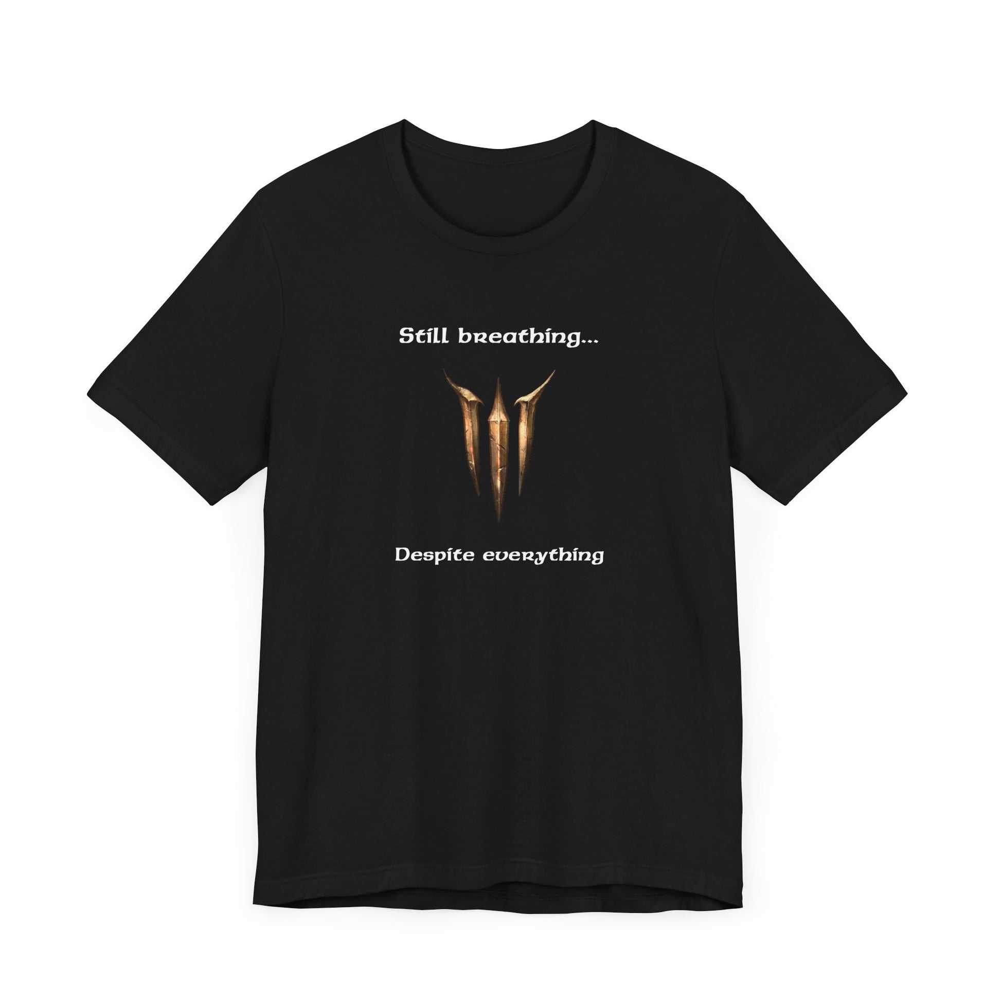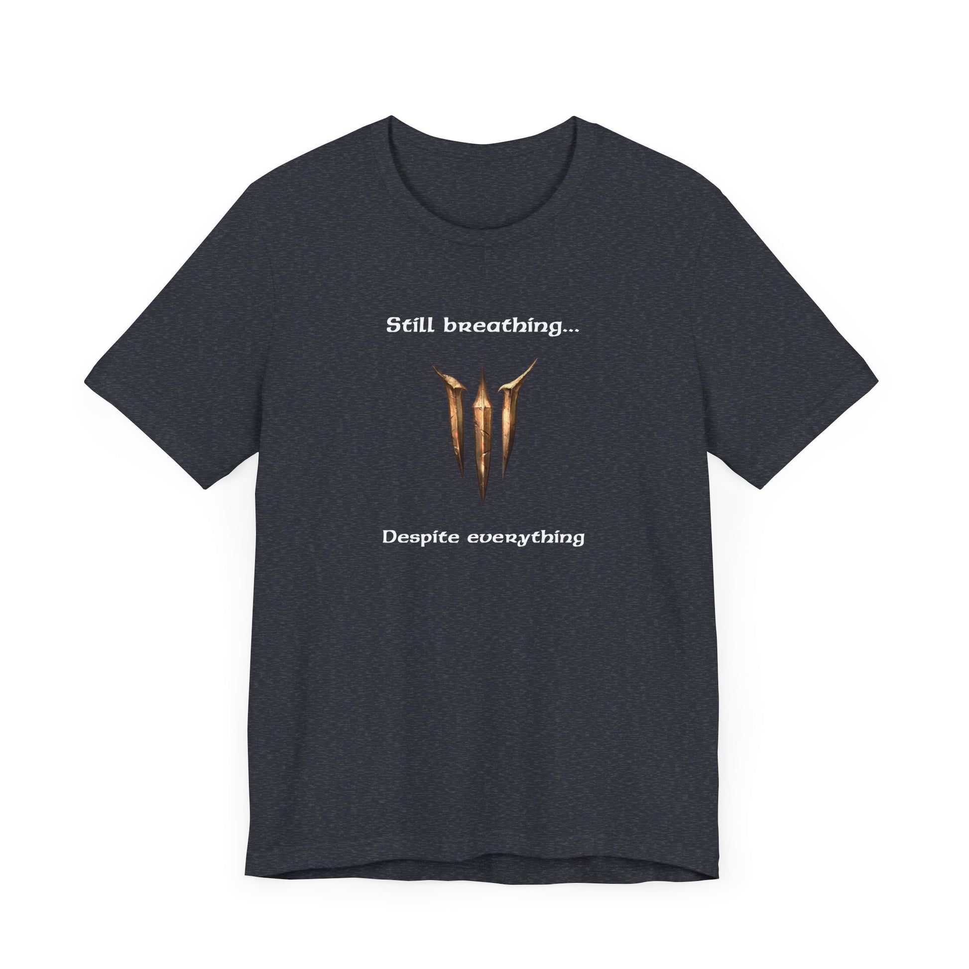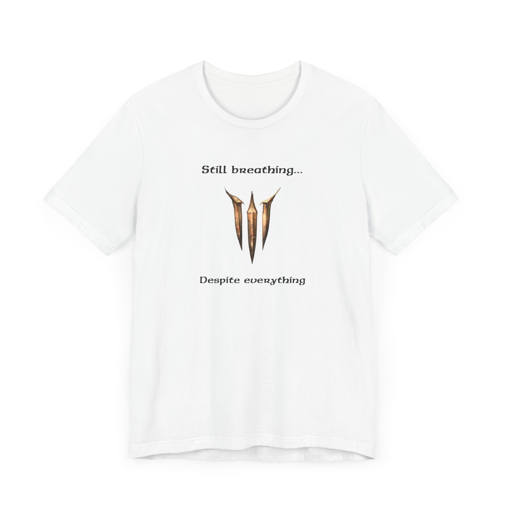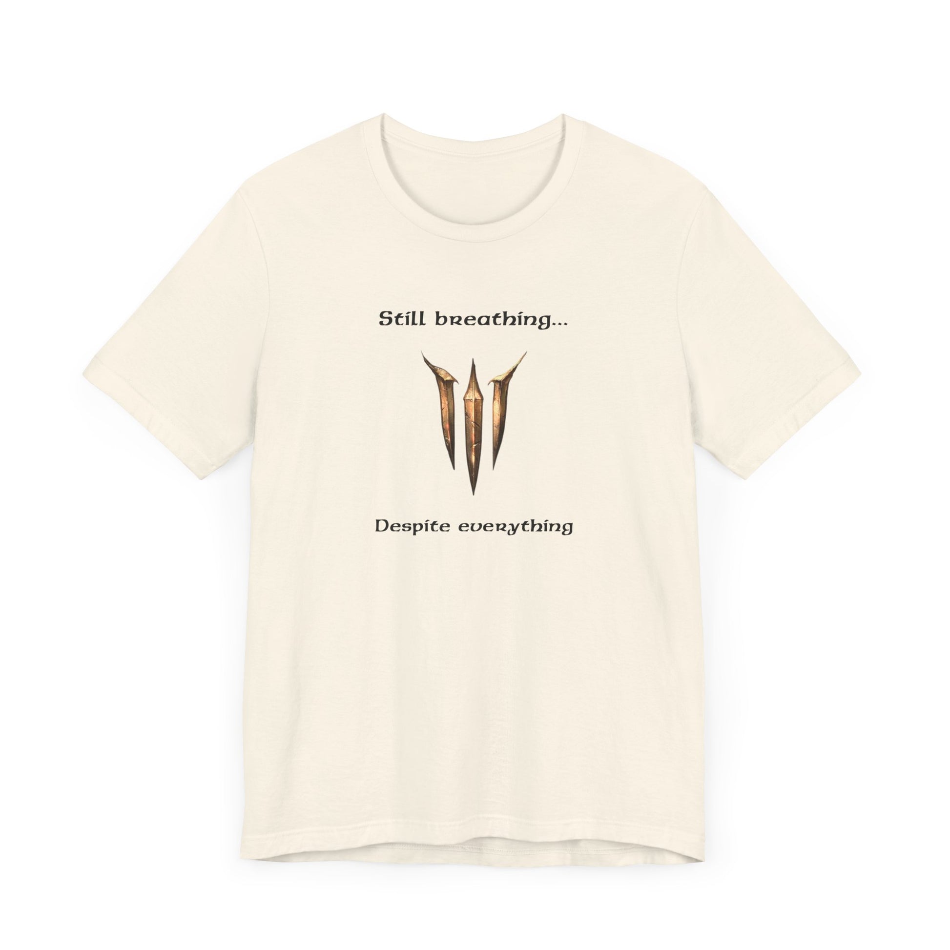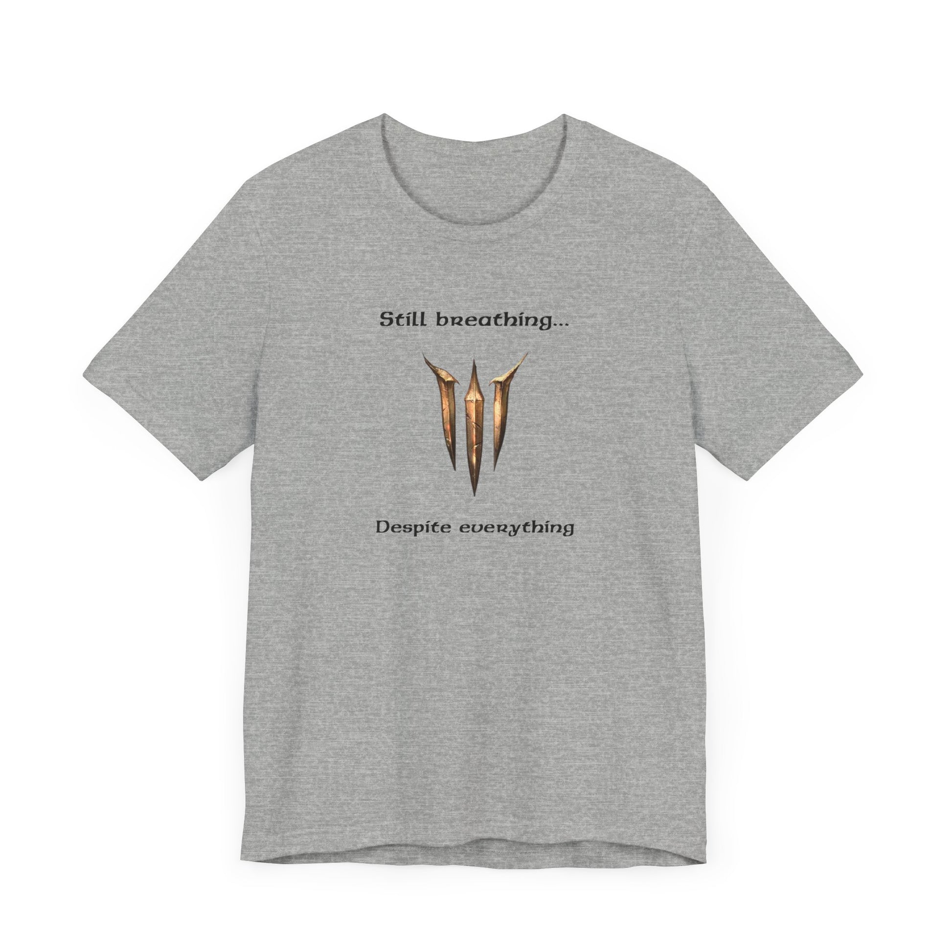 BG3 Tav Tee: 'Still breathing, despite everything' - Baldur's Gate 3 Unisex Shirt for Gamers and DND Nerds | PC, Xbox, and Playstation