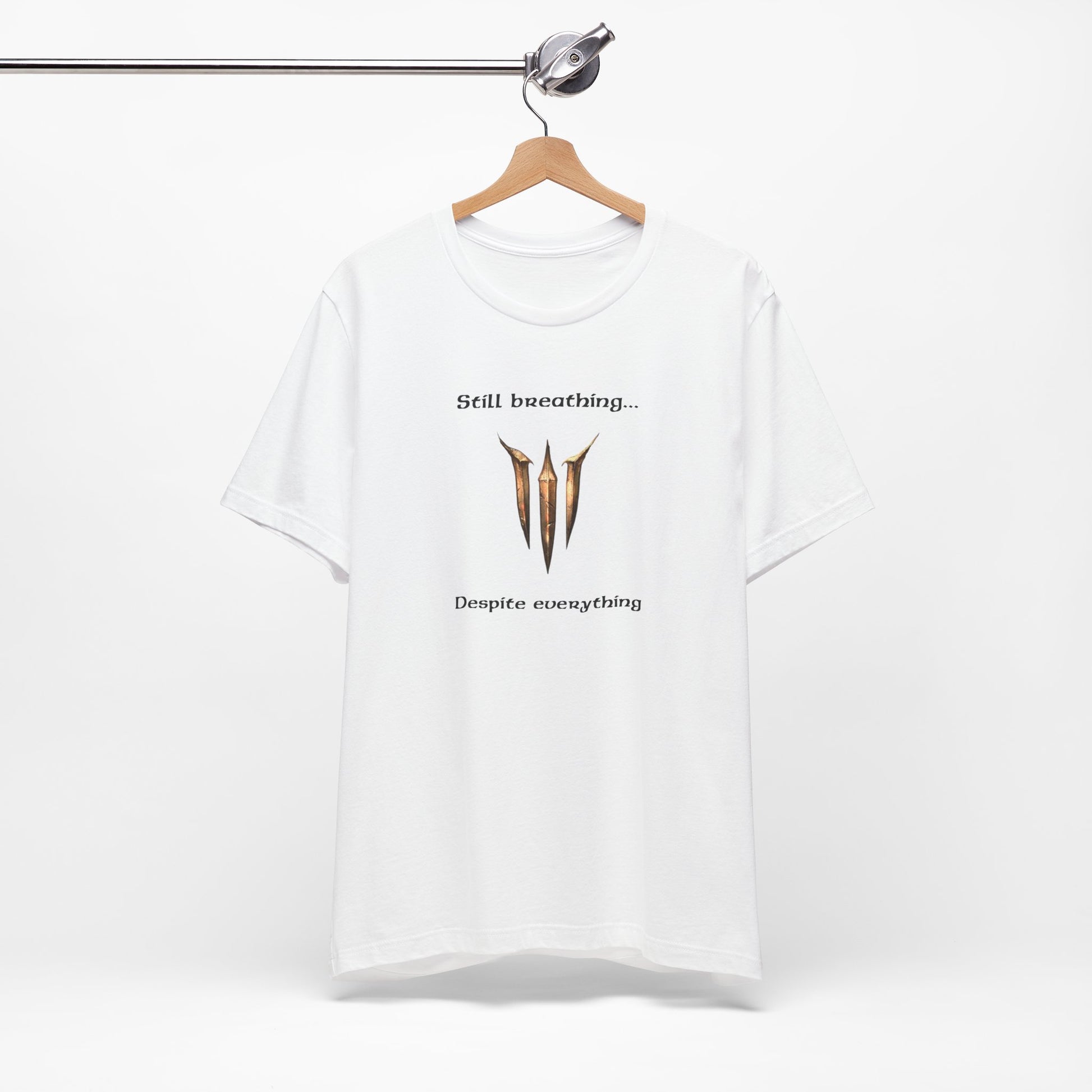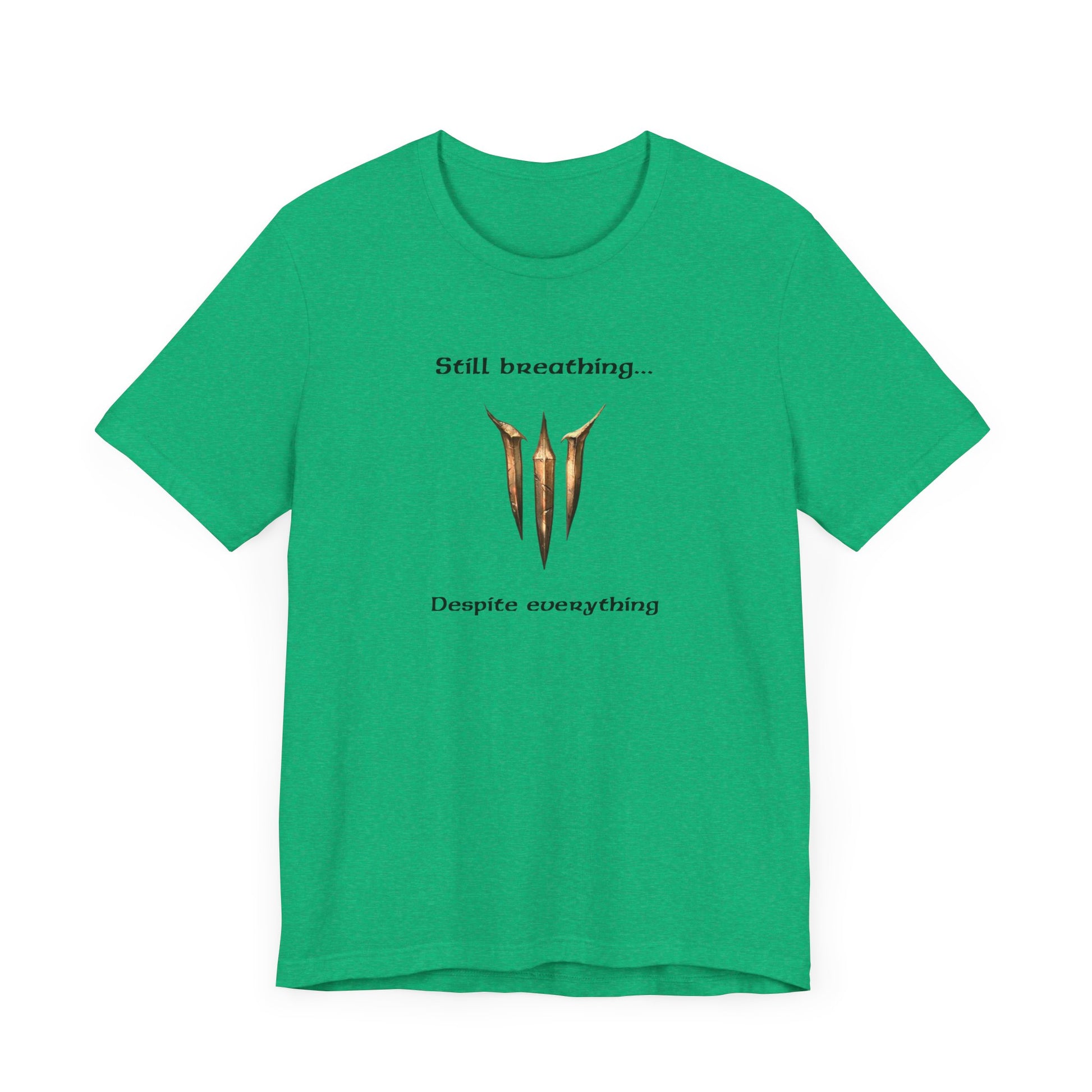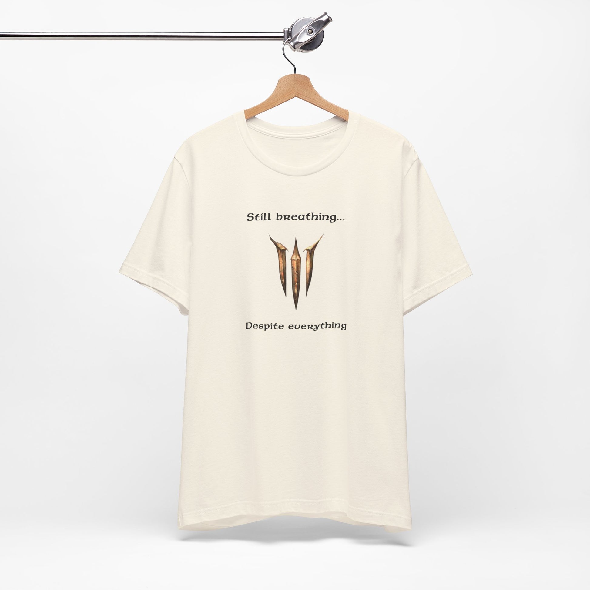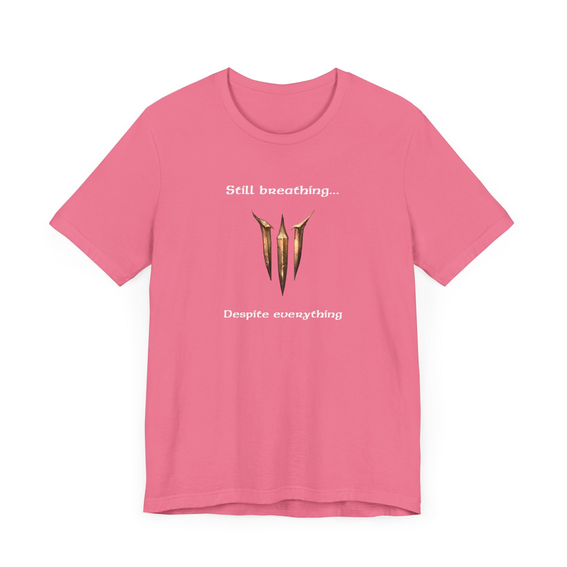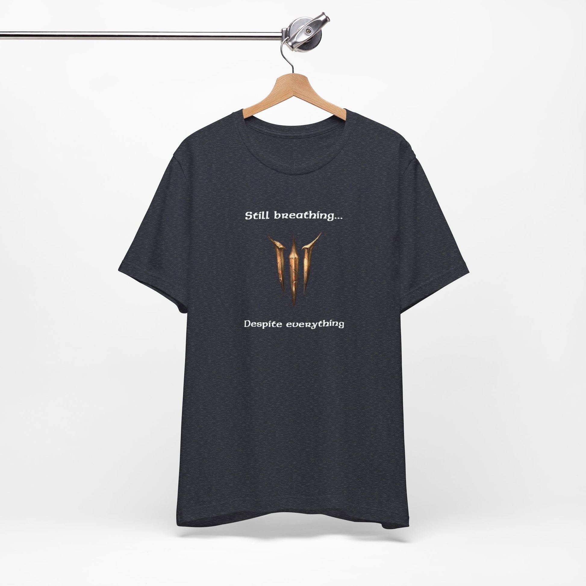 BG3 Tav Tee: 'Still breathing, despite everything' - Baldur's Gate 3 Unisex Shirt for Gamers and DND Nerds | PC, Xbox, and Playstation